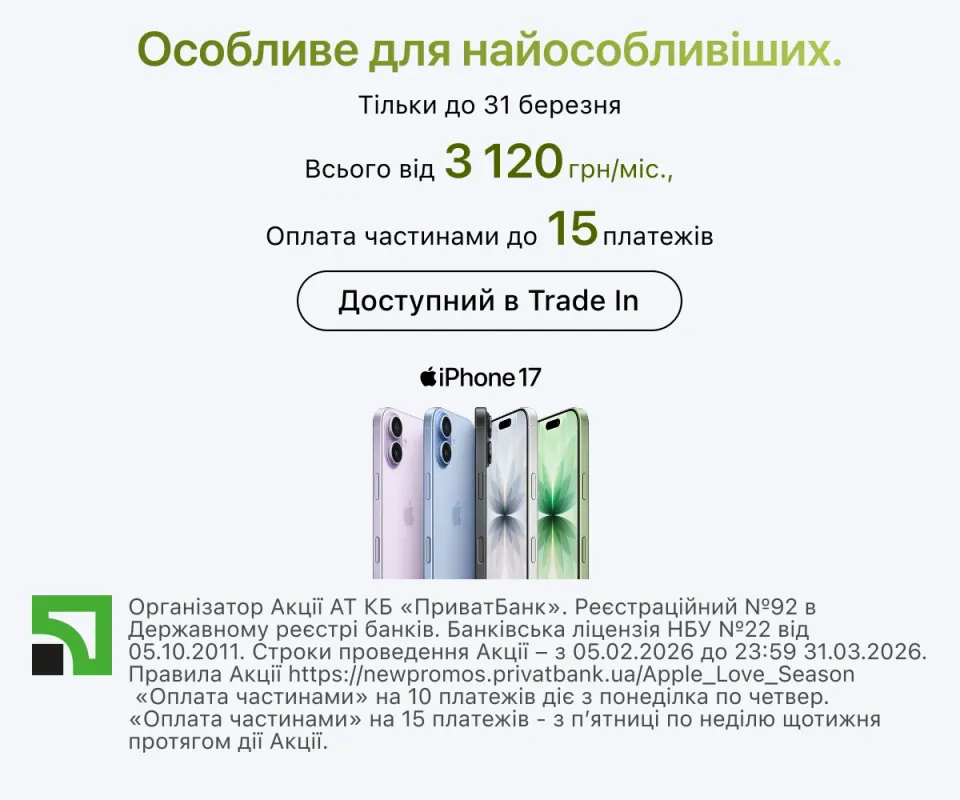 — зручна оплата і кілька варіантів на вибір — вносьте відразу всю суму, розбивайте її за допомогою розстрочки або міняйте пристрій на новий за Trade In;