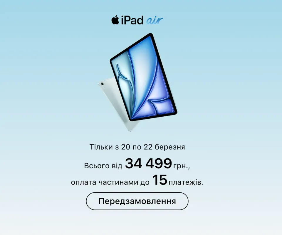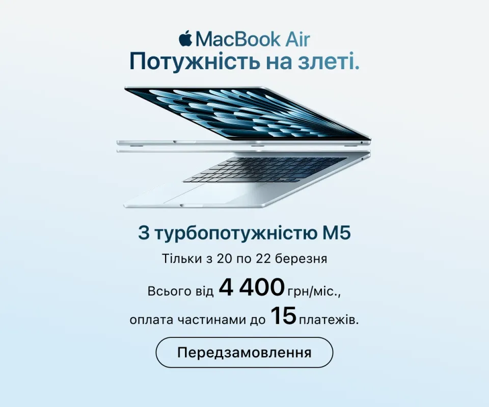 У продажу представлені всі останні моделі iPhone — від базових до професійних. Для навчання і творчості можна підібрати iPad або MacBook, а створити потужну робочу студію можна з iMac або Mac Studio, доповнивши настільний комп'ютер Studio Display.
