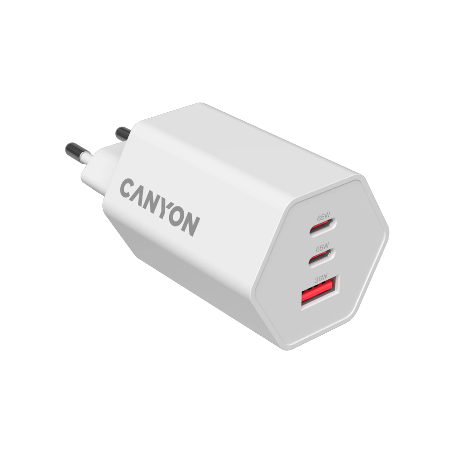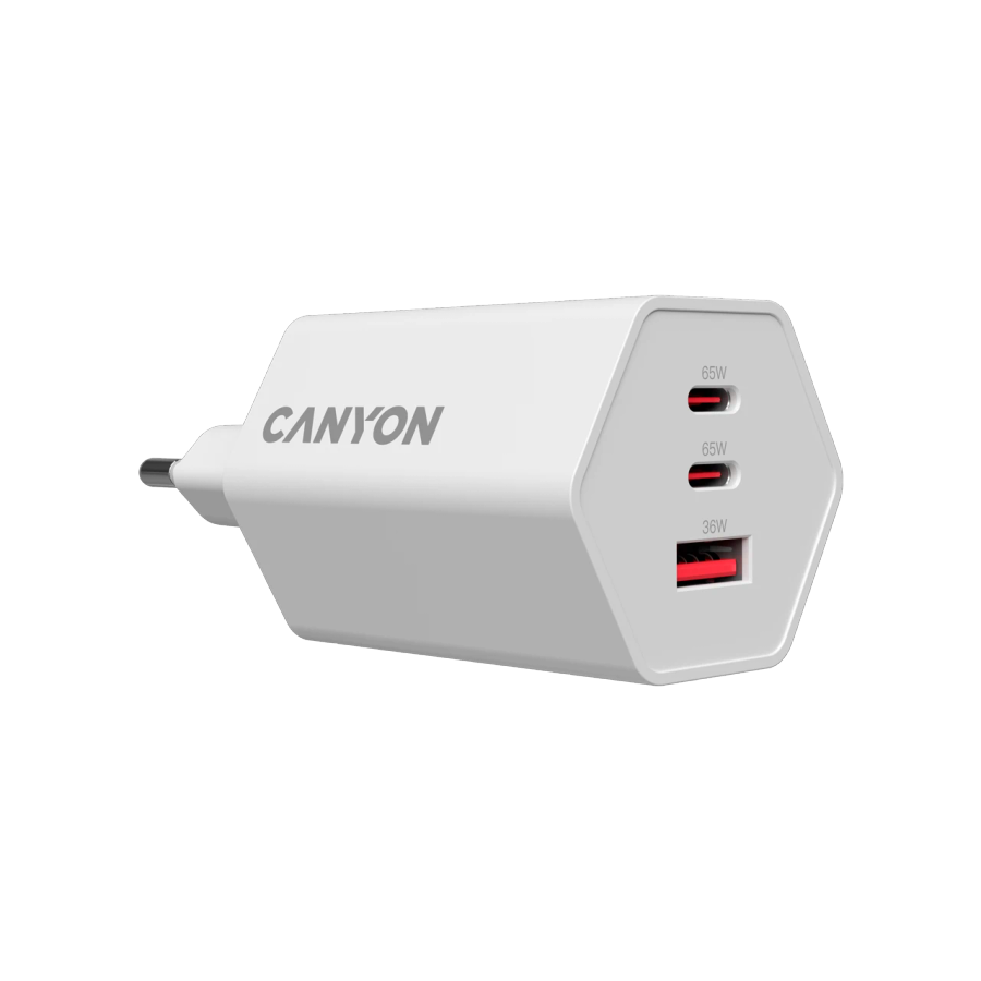 Адаптер питания CANYON Hexagon 65 3*USB/USB-C 2*USB Тип C, USB Тип A, 65 Вт