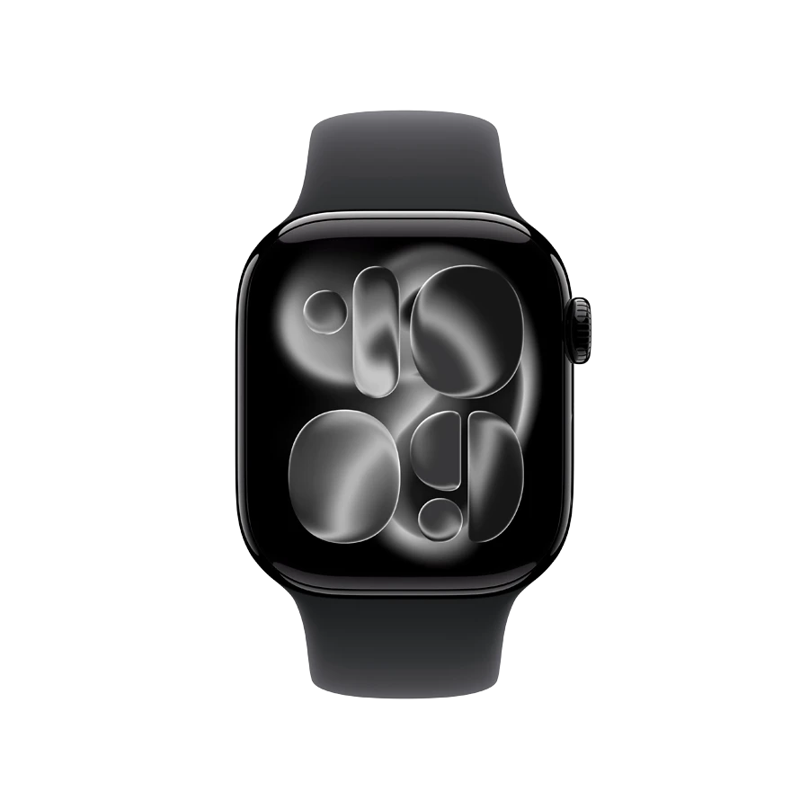 Apple Watch Series 11 GPS + Cellular, Черный спортивный ремешок, M/L, 42мм, Jet Black Aluminium