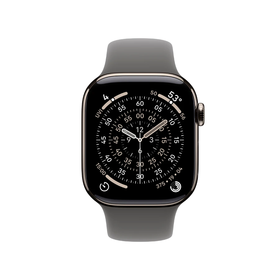 Apple Watch Series 11 GPS + Cellular, Stone Grey Sport Band, S/M, 42мм, Natural Titanium