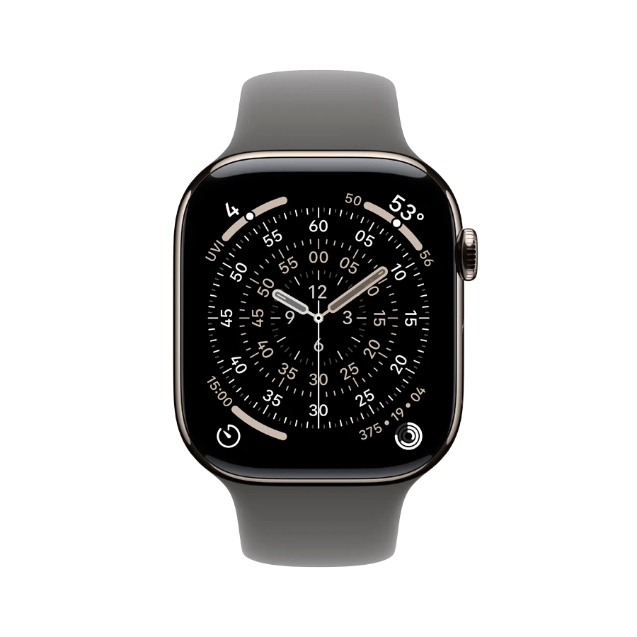 Apple Watch Series 11 GPS + Cellular, Stone Grey Sport Band, S/M, 46мм, Natural Titanium