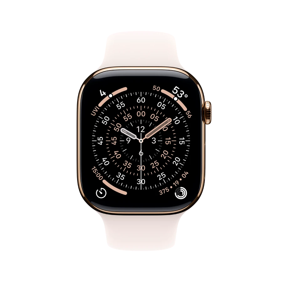 Apple Watch Series 11 GPS + Cellular, Светлый розовый спортивный ремешок, S/M, 46мм, Gold Titanium