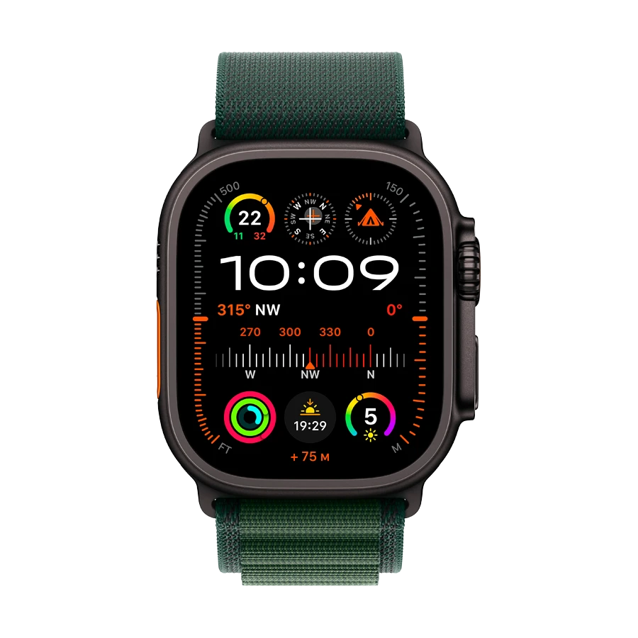 Apple Watch Ultra 2 2024, Темно-зеленый альпийский ремешок, S, 49мм, Black Titanium