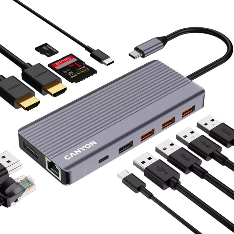 CANYON USB Хаб 13in1 USB C hub Серый