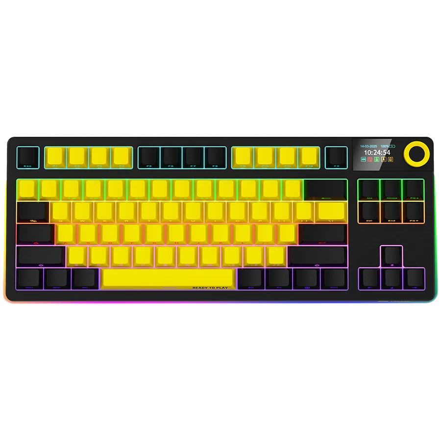 Підсвічування RGB Підтримка NKRO Перемикачі з можливістю гарячої заміни Конструкція Gasket mount Різнокольорові клавіші 19 режимів підсвічування Конфігурований багатоколірний RGB-дисплей Мультимедійна інтелектуальна ручкаРозкладка клавіатури