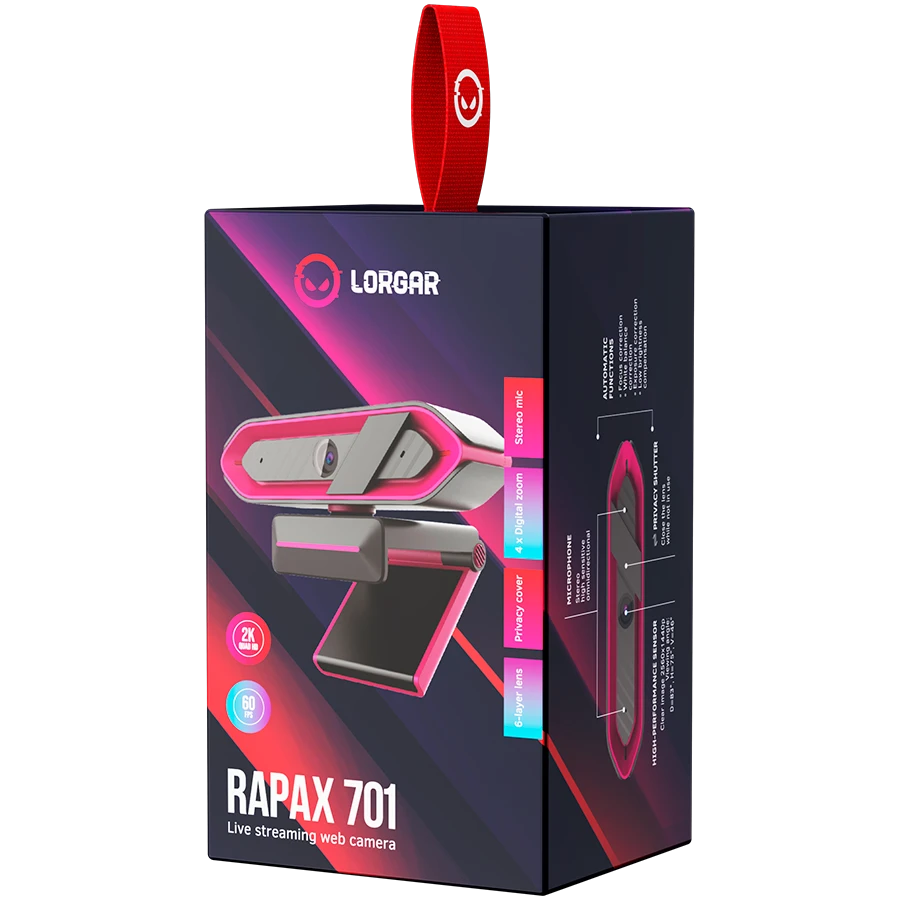 Веб-камера LORGAR Rapax 701 Streaming 2K Pink (LRG-SC701PK)