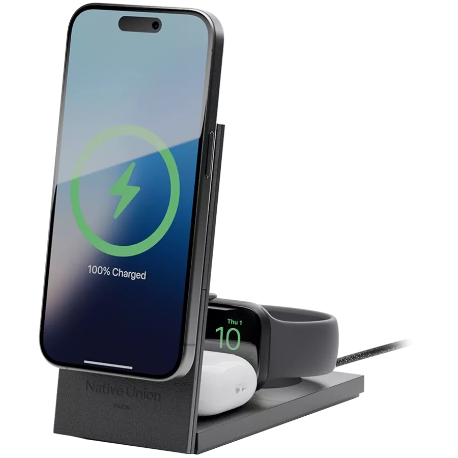 Бездротовий зарядний пристрій Native Union Rise 3-in-1 Qi2 Black (RS-3IN1-BLK-INT)