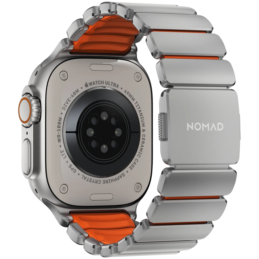 NOMAD Band Extension Stratos Band Natural Hardware/Ultra Orange за Apple Watch 44 mmApple Watch 45 mmApple Watch 46 mmApple Watch 49 mm 46/49 mm